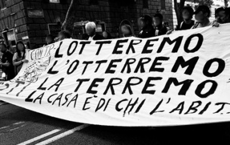 La lotta per la casa rappresenta oggi sul nostro territorio l’espressione più alta di conflittualità sociale, un mezzo di riappropriazione immediata di reddito indiretto, una pratica che negli anni si è dimostrata vittoriosa ed efficace e che ad oggi ha dato possibilità di riscatto sociale a centinaia di uomini donne e bambini. Rappresenta altresì, un percorso inviso a politici, palazzinari e padroni perché, per le sue proporzioni di massa, per la forte attenzione che suscita su sempre più ampi settori popolari stritolati in una condizione di povertà dall’avanzare della crisi, potrebbe rappresentare, al fianco dei movimenti sociali anticapitalisti e del sindacalismo di base, la mano con centinaia di dita stretta in un unico minaccioso pugno che rovescerà il loro mondo ovattato che si regge sul nostro sudore e sui nostri sacrifici.